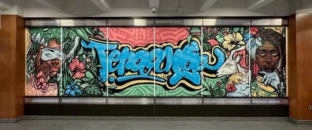 ARTWORK: Jimmy Baptiste - MEDIUM: Procreate / vinyl Print - DIMENSION: (Wall) 23.5’’ x 8’’ & (Stairs) 22’’ x 38’’